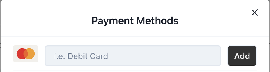 Click on that button and it will display a modal with all your payment methods, on the top of the modal you'll see a bar to add a new item, simply click on the icon to select your preferred icon, enter a name for the payment method and click Add.