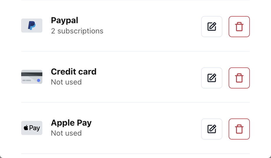 You can indicate which payment methods you are using for each subscriptions, to keep your subscriptions even more organized.